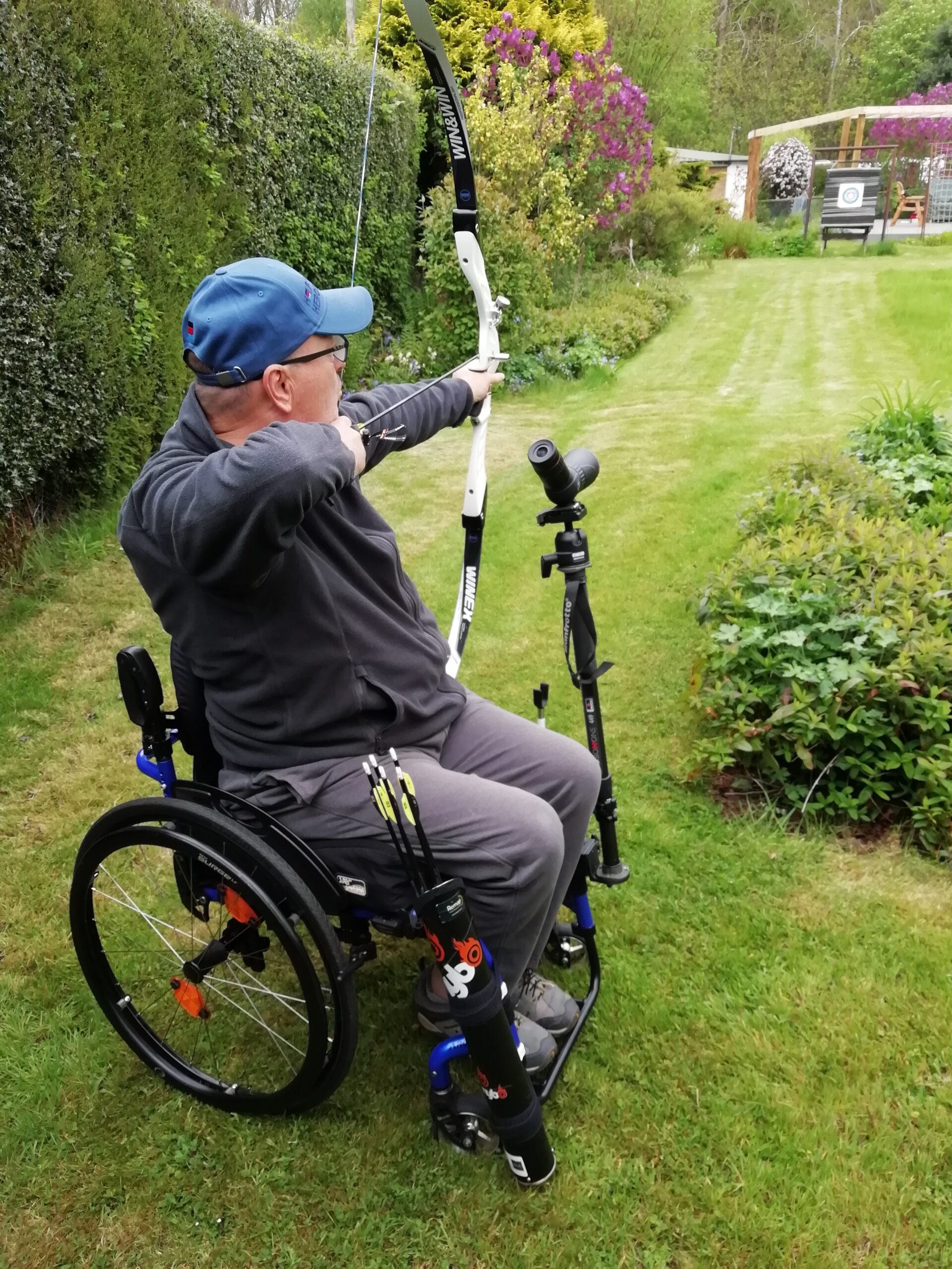 Additionally, because of Terry’s visual impairment, he encountered difficulties in tracking precisely where his arrows landed on the target. To address this issue, he bought a scope and mounted it on a tripod. However, as a wheelchair user, he struggled to use it effectively, frequently inadvertently knocking the tripod with his bow, disrupting his shooting process.