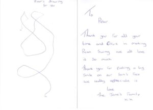 So much so that they created a special thank-you card, which they sent to Peter…