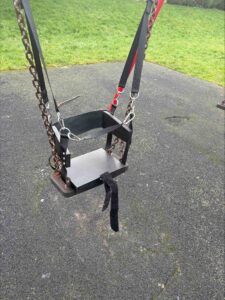 Ryan has Autism and found difficulty hanging on to the grown-up kids swings in the park. As he had grown out of using the childrens’ safety swing. Gloucester remap came to his rescue and built a safety seat that could be hooked on to the swing chains. The design was based on a project by the Remap Derby panel.